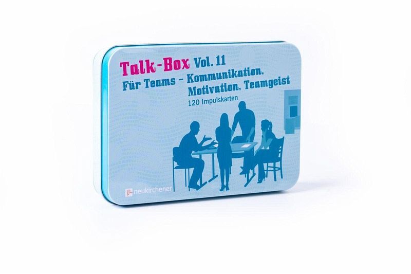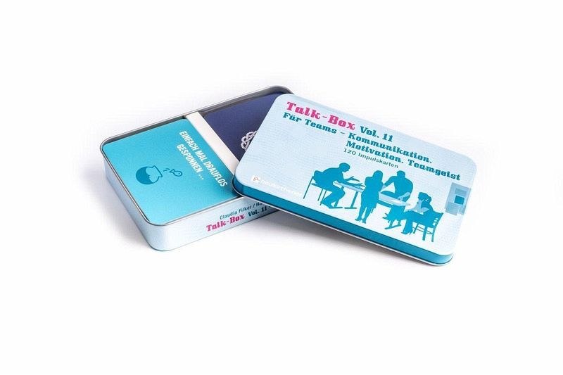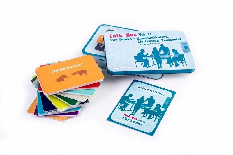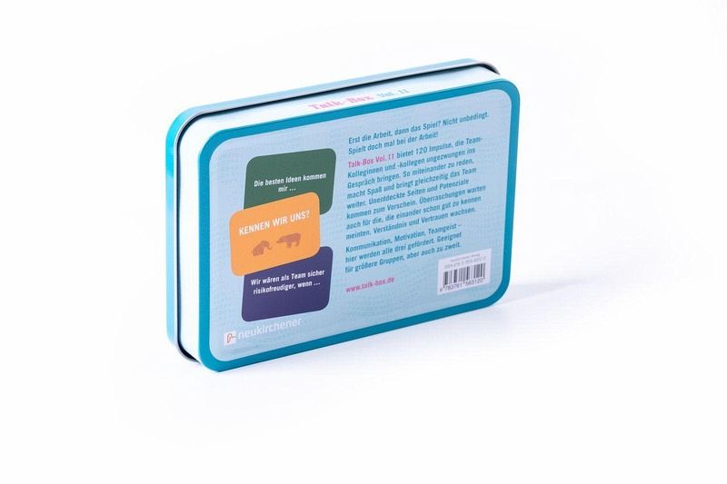 Erst die Arbeit, dann das Spiel? Nicht unbedingt.Die Talk-Box Vol. 11 bietet 120 Impulse, die Team-Kolleginnen und -kollegen ungezwungen ins Gespräch bringen. Ganz nebenbei werden Kommunikation, Motivation und Teamgeist gefördert.Kategorien:- Kennen wir uns?- Couch und Schreibtisch: Leben in Balance- Unser Team- Frauen & Männer- Das Kleinklein- Chefsachen- Das nervt!- Arbeitsstil- Abschalten und Energie tanken- Einfach mal drauflos gesponnen ...