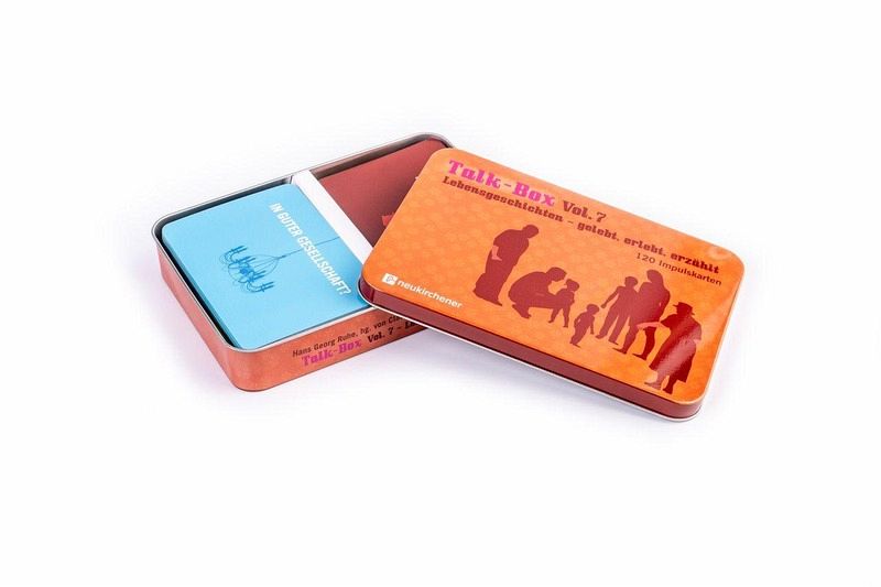 Die Talk-Box Vol. 7 Lebensgeschichten hilft, dem eigenen Leben auf die Spur zu kommen und miteinander ins Gespräch zu finden. Das kann sowohl innerhalb der Familie und unter Freunden als auch in der begleiteten Biografiearbeit geschehen. Die Spielregeln sind derart gestaltet, dass jeder so viel erzählen kann, wie er gern weitergeben möchte. Dadurch erfährt man von den Gesprächspartnern und Mitspielern, aber auch von sich selbst erstaunliche Dinge!Kategorien:- Meine Vorfahren- Meine Menschen- Mein Zuhause- Leben und arbeiten- In guter Gesellschaft?- Mehr, als du denkst- Joker: Ich kann auch anders!