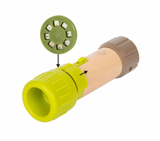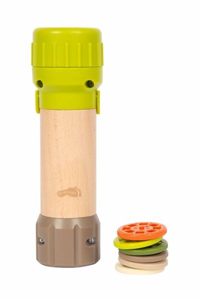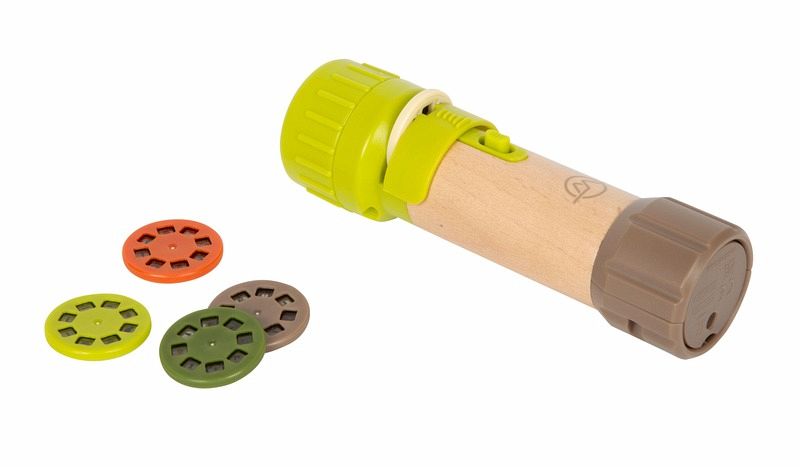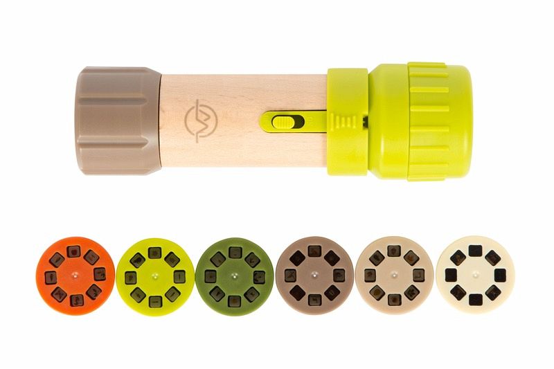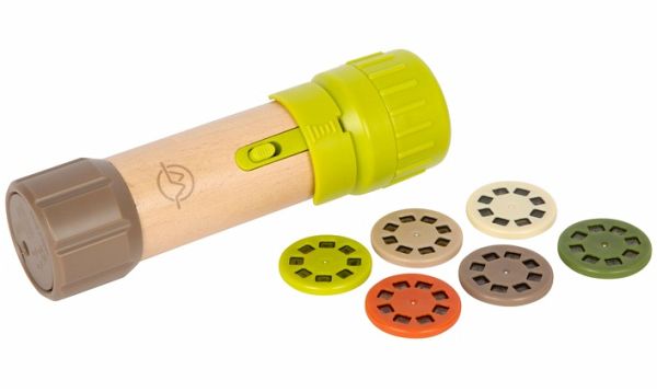 Licht an für große Entdeckungen! Dieses moderne Entdeckerspielzeug vereint gleich zwei Funktionen als Taschenlampe sorgt es für Licht in der Dunkelheit, als Bildprojektor bringt es spannende Lerninhalte an Wand, Decke oder auf den Boden. In der kindgerechten Taschenlampe im ergonomischen Format aus robustem Kunststoff und naturbelassenem Holzgriff steckt geballtes Wissen: Sechs austauschbare Filmräder zeigen verschiedene naturwissenschaftliche Themen wie den Entwicklungszyklus von Frosch, Schmetterling und Löwenzahn, Blätter und Früchte von Bäumen, Tiere und deren Fußspuren sowie Sternbilder. Perfekt für kleine Naturforscher! Mit der 2-in-1 Taschenlampe wird kindliche Neugier zum Erlebnis: Kinder lernen so spielerisch Zusammenhänge aus Biologie, Botanik und Astronomie kennen visuell, eindrucksvoll und intuitiv. Durch das Einsetzen und Wechseln der Bildscheiben wird zusätzlich die Feinmotorik gefördert. Die einfache Handhabung sowie die hochwertige Verarbeitung machen das Entdeckerspielzeug nicht nur zum idealen Begleiter bei Streifzügen durch die Natur in der Dunkelheit es macht auch im Kinderzimmer, auf Reisen oder beim Einschlafen eine gute Figur leuchtende Kinderaugen garantiert!