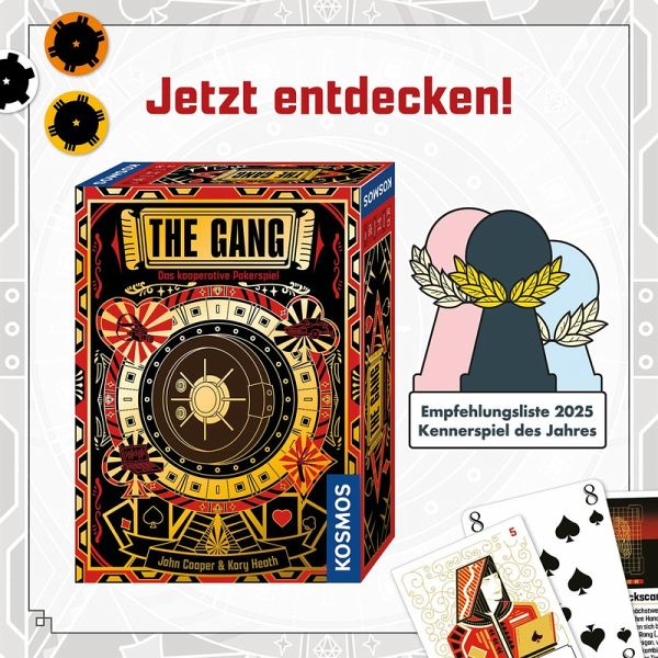 - So wurde Poker noch nie gespielt: Klassische Pokerelemente treffen auf eine ganz neue Spieldynamik. Es finden sich bei „The Gang“ einige bekannte Regeln wieder – doch hier wird passend zum „Überfall“-Thema kooperativ gespielt! Ein spannendes Spiel für Pokerneulinge wie Profis.