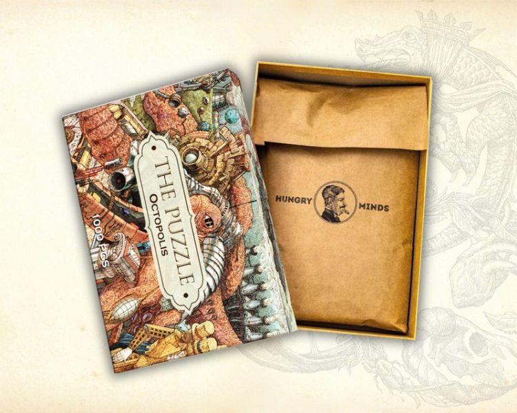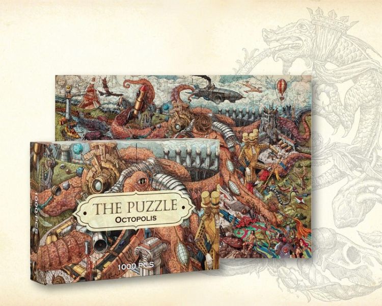 Tritt ein in die faszinierende Welt von Octopolis einem Meisterwerk, das die Grenzen des Puzzles neu definiert! Handgezeichnet von THE BOOK-Art Director Lev Kaplan, ist dieses 1000-teilige Puzzle mehr als nur eine Herausforderung für detailverliebte Tüftler es ist ein Kunstwerk.
