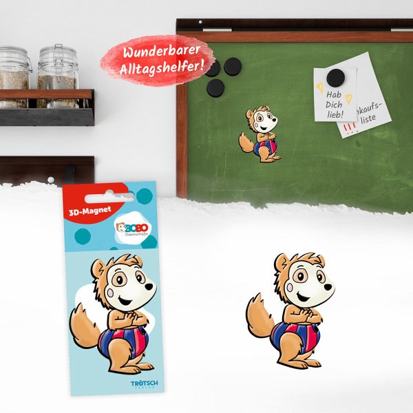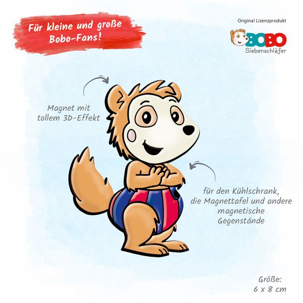 Dieser niedliche Magnet in 3D-Optik mit dem kleinen Bobo Siebenschläfer macht sich besonders gut am Kühlschrank, an der Magnettafel oder anderen magnetischen Oberflächen. Das ideale Mitbringsel für alle kleinen und großen Bobo-Fans!
