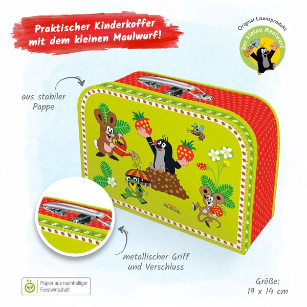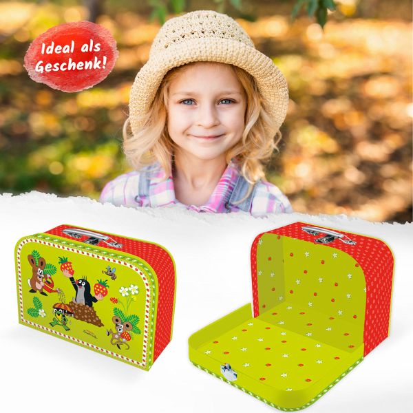 Der kleine Kinderkoffer mit dem kleinen Maulwurf ist bereit für jedes Abenteuer - einfach die liebsten Sachen einpacken und überall mit hinnehmen! Dieser wunderschöne Koffer aus Pappe ist prima geeignet für den Kurzbesuch sowie zum Aufräumen von Spielsachen zu Hause. Ein tolles Geschenk für kleine Maulwurf-Fans - geeignet für alle Anlässe!