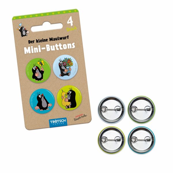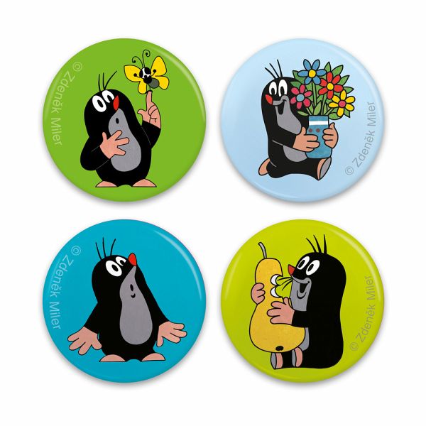 Diese vier tollen Mini-Buttons von dem kleinen Maulwurf sind garantiert an jeder Jacke, jedem Rucksack und jeder Federtasche ein richtiger Blickfang! Das ideale Mitbringsel oder kleine Geschenk für alle kleinen und großen Maulwurf-Fans!