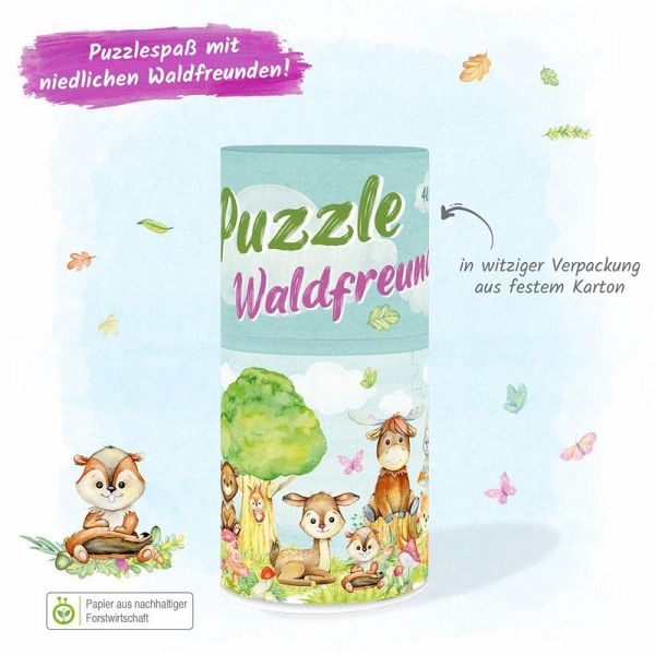 Tierisch niedlicher Puzzlespaß aus der Tube mit 24 Teilen für Kinder ab 3 Jahren.
