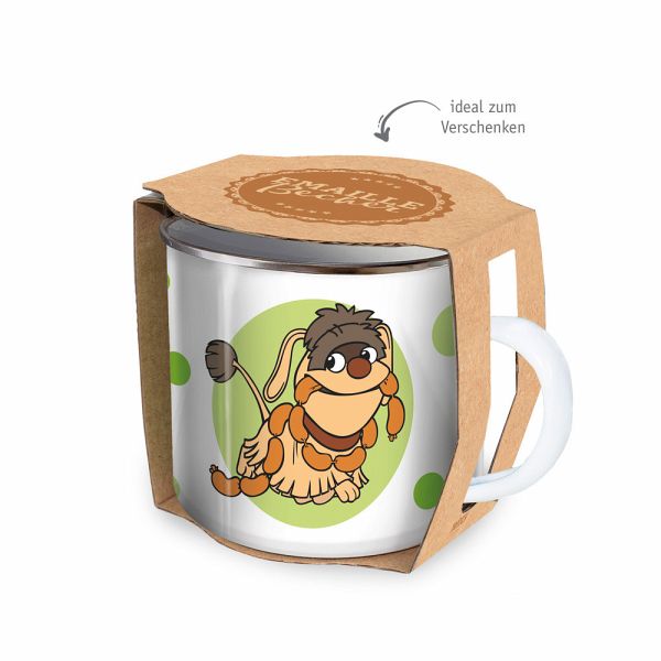 Ob Kindergarten, Camping oder Picknick unterwegs - die robuste Emailletasse mit Moppi kommt überall mit hin! Mit ihrem Fassungsvermögen von ca. 300 ml hat sie die perfekte Größe für einen Tee oder Kakao und ihr hübsches Design mit der klassischen Tassenform macht sie zu einem echten Blickfang. Eine tolle Geschenkidee für alle Moppi-Fans!