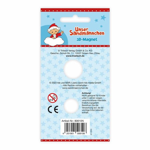 Das Sandmännchen schwebt schwerelos durch den Weltraum! Dieser hübsche Magnet in 3D-Optik macht sich besonders gut am Kühlschrank, an der Magnettafel oder anderen magnetischen Gegenständen. Das ideale Mitbringsel für kleine und große Sandmann-Fans!