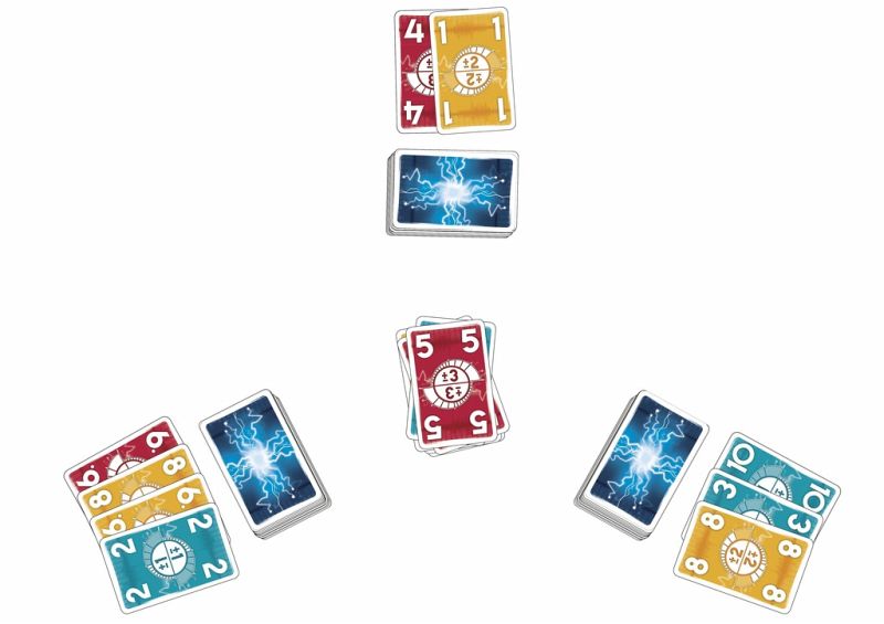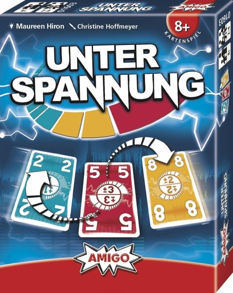 Unter Spannung MBE3 In diesem rasanten und verblüffend einfachen Spiel sind eine schnelle Reaktion und einfaches Kopfrechnen gefragt. In der Tischmitte liegt eine 5 +/- 2. Schnell werden zwei hinzugezählt und eine 7 abgelegt oder zwei abgezogen und eine 3 ausgespielt. Entscheidend ist, was man auf der Hand hat und schneller zu sein als die Mitspielenden. Wer keine Karte mehr besitzt, gewinnt. Einfache Regeln - Langeweile + viel Spaß = Unter Spannung So spielt man Unter Spannung MBE3: * Mischt alle Karten und verteilt sie gleichmäßig unter euch. * Legt die letzte Karte offen in die Tischmitte. Sie bildet den Beginn des Ablagestapels. * Legt jeweils eure Karten als Stapel verdeckt vor euch ab und zieht vier Karten auf die Hand. * Ihr spielt alle gleichzeitig und versucht, eure Karten auf den Ablagestapel loszuwerden. * Um die nächste Karte passend auf den Ablagestapel abzulegen, müsst ihr den Kartenwert in den Ecken und deren +/- Zahl in der Mitte entweder zusammenzählen oder voneinander abziehen. * Da es keine Reihenfolge gibt, legt die schnellste Person eine passende Karte ab. * Neue Karten könnt ihr jederzeit einzeln von eurem Stapel auf die Hand nachziehen. * Wer als Erstes keine Karten mehr hat, gewinnt. Inhalt: * 73 Spielkarten * 1 Spielanleitung Maße: 12,3 x 9,7 x 2,2 cm Autor: Maureen Hiron Grafik: Christine Hoffmeyer Erfolgsfaktoren: * Tolle Kombi aus Schnelligkeit und Kopfrechnen * Leicht eingängiges Spiel mit kurzen Regeln Dieses Spiel ist "spiel gut" ausgezeichnet. (2016)