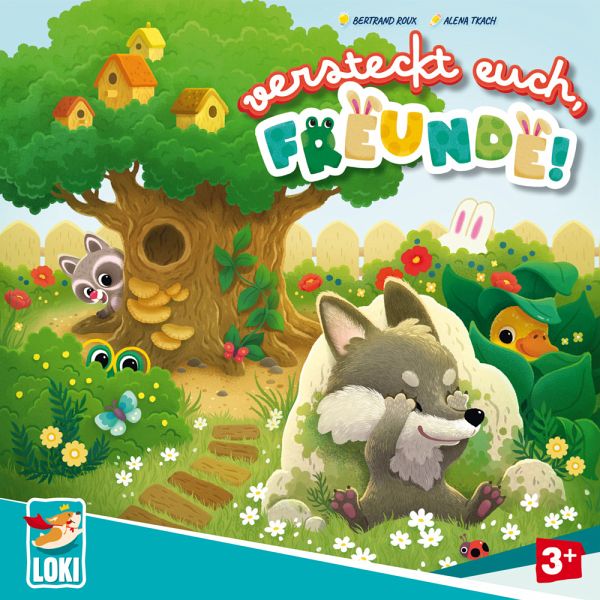 Eiiins, Zweiii, Dreiii Gleich beginnt ein aufregendes Versteckspiel im Park. Beeilt euch, der Wolf zählt schon. Höchste Zeit für alle anderen, sich im Park gute Verstecke zu suchen! Viiier, Füüünf, Seeechs Schnell, ein Tier ist schon unter der Rutsche abgetaucht! Siiieben, Aaacht, Neuuun Ein anderes Tier klettert auf den Baum, der Rest huscht zum Häuschen! Zehn! Ich kooomme! Versteckt euch im Park vor dem Wolf und sammelt so viele Süßigkeiten wie möglich! Denkt daran: Auch der Wolf wird süß belohnt, wenn er euch im Versteck entdeckt. Wer am Ende am meisten Süßigkeiten hat, gewinnt. In "Versteckt euch, Freunde!" verwandelt sich die Box zu einem fantastischen 3-D-Spielplatz. Ein Kind spielt den Wolf, die anderen Kinder sind seine tierischen Freunde, die sich vor ihm verstecken. Der Wolf versucht durch die Gucklöcher der Wolf-Masken, die Tierfiguren zu entdecken. Die Rolle des Wolf wechselt pro Runde, so dass alle Kinder einmal suchen dürfen.