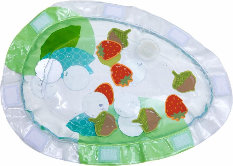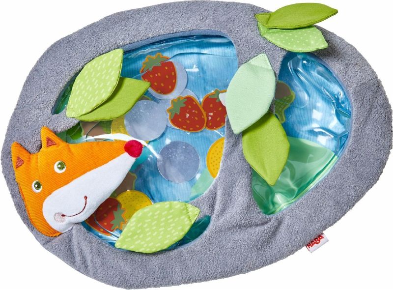 Der freundliche Fuchs zeigt den Weg zu einem magischen Teich: Die HABA Wasser-Spielmatte ist ein spannendes Motorikspielzeug für Babys ab 6 Monaten. Das Inlett lässt sich mit Wasser füllen. Die Kleinen liegen in Bauchlage bequem auf der Spielmatte aus Stoff. Durch ein großes Sichtfenster beobachten sie farbenfrohe Spielelemente. Verschiedene Motive schwimmen unter den Zweigen der Hülle vorbei. Wenn man auf die Spielmatte drückt, bewegen sie sich und mit etwas Geschick lassen sie sich lenken. Das ist spannender Wasserspaß und eine lustige Motorik-Übung für Babys.