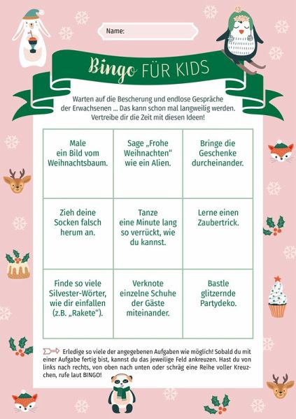 Unkompliziert: Jedes ausgeteilte Blatt enthält die Spielregeln: keine Erklärung, Spielleitung oder weitere Vorbereitung nötigPerfekt als netter Zeitvertreib für die FeiertageEnthält extra Spieleform für Kinder - geeignet für die ganze Familie
