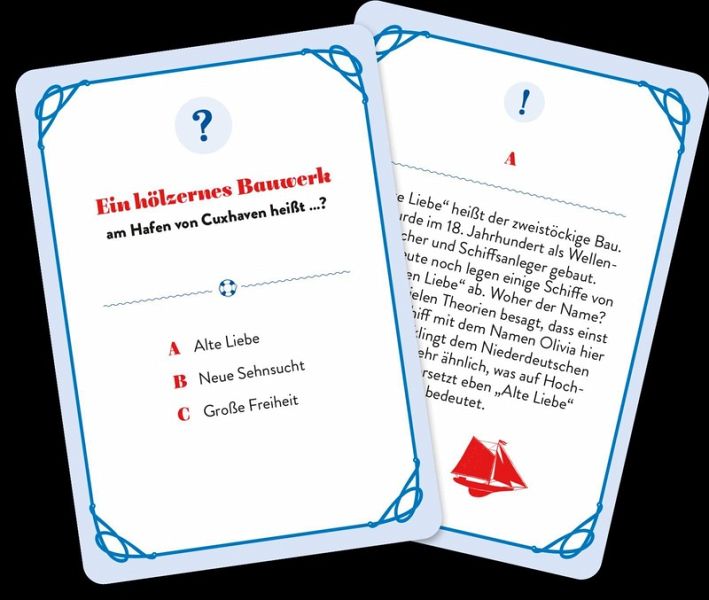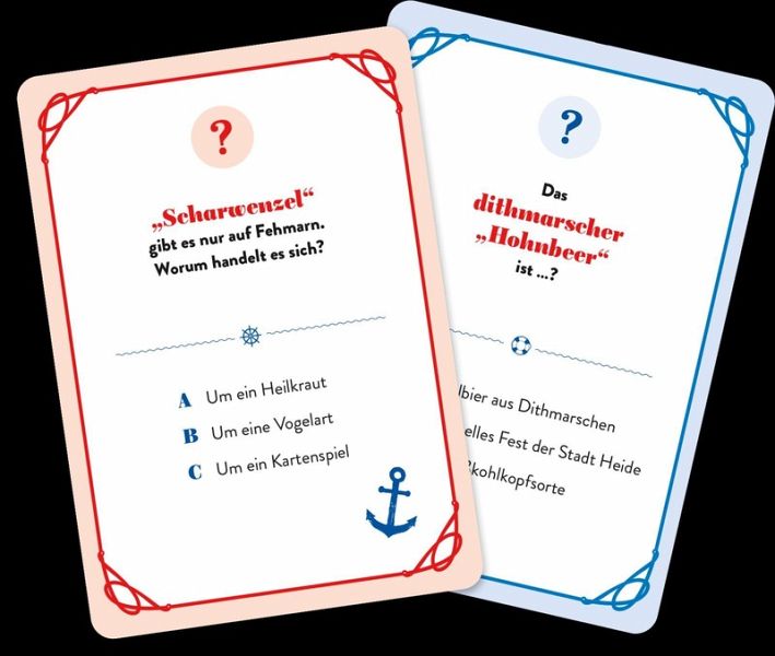 Witziges Ratespiel Unnützes Wissen rund um die deutsche Küste und InselnWissensquiz für Einheimische wie auch Urlauber_innen und neu Zugezogene50 Frage-und-Antwort-Karten in SpielkartengrößeAllein oder in der Gruppe spielbar, für zu Hause und unterwegsIdeal als Reise-Spiel, Urlaubs-Souvenir und originelle Geschenkidee