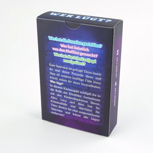 In diesem Kartenspiel schlüpft ihr in die Rolle der Ermittler: Gemeinsam mit den Kinderdetektiven Simon, Alice, Luca und Bine löst ihr Kriminalfälle und überführt die Täter. Besitzt ihr eine ausgezeichnete Spürnase und könnt alle Lügen entlarven?