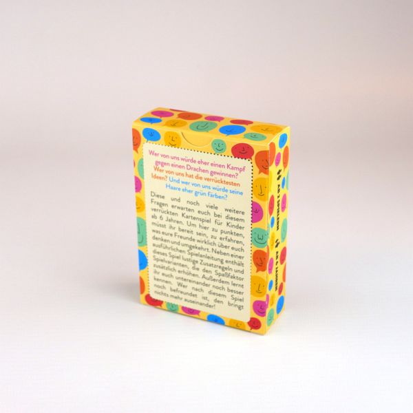 Diese und noch viele weitere Fragen erwarten die Spieler bei diesem verrückten Kartenspiel für Kinder ab 6 Jahren.
