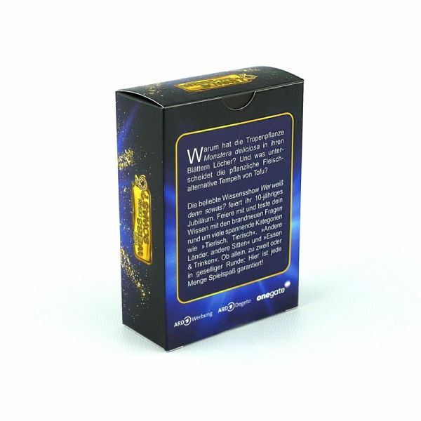 Warum hat die Tropenpflanze Monstera deliciosa Löcher in ihren Blättern? Was unterscheidet die pflanzliche Fleischalternative Tempeh von Tofu? Und wie überleben Labyrinthfische Trockenzeiten? Das Kartenspiel zur beliebten Wissensshow Wer weiß denn sowas? geht in die sechste Runde. Wer von euch kann die Fragen, die Kai Pflaume seinen prominenten Kandidat_innen stellt, beantworten? Etwa 80 neue abwechslungsreiche Fragen aus zwölf Kategorien wie Essen & Trinken, Wissenschaft und Tierwelt machen den nächsten Spieleabend zum Hit. Aber auch allein oder zu zweit könnt ihr euch durch die spannenden Fragen quizzen.
