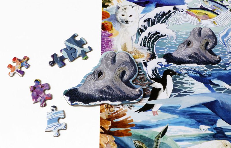 Neben den Standart-Teilen gib es noch einen besonderen Clou: 20 Teile in Form von Tieren (u.a Seepferdchen, Hai und Yeti-Krabbe). Hier besteht die Herausforderung darin, nicht nur das Puzzle zu legen, sondern dabei die speziell geformten Teile in das bestehende Puzzle zu integrieren und zu einem stimmige Gesamtbild zusammenzufügen.