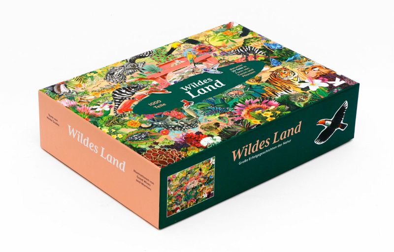 -Nachfolger unseres Erfolgspuzzles Wilde Ozeane-Konventionelle Puzzleteile werden mit individuell geformten Teilen zusammengesetzt-Perfekt zum gemeinsamen Puzzeln für Kinder und Erwachsene-Poster mit hoffnungsvollen Geschichten über LandlebewesenIn diesem 1000-Teile-Puzzle erleben die Landlebewesen der Erde ein außergewöhnliches Comeback! Es enthält 20 Teile in Form von Tieren und Pflanzen, die mit den herkömmlichen Puzzleteilen zusammengesetzt werden können, sowie ein faltbares Poster, das elf bemerkenswerte Erfolgsgeschichten der Natur erzählt. Dieses Puzzle zeigt die wundervolle, farbenfrohe Welt unserer Flora und Fauna und berichtet davon, wie sich Arten und Lebensräume erholen können, wenn wir sie lassen.