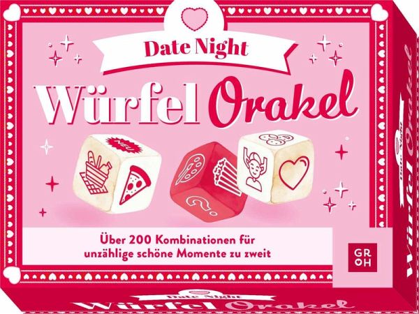 Schenke garantiert aufregende Dates!3 Würfel und ein 48-seitiges Booklet liefern über 200 Kombinationsmöglichkeiten für abwechlsungreiche Date-IdeenTolle Date-Ideen für Kulinarisches, Aktivitäten und sich Näher kommenHochwertige Ausstattung: stabile Box, geprägte Würfel,die gut in der Hand liegen