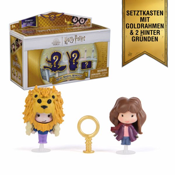WWO MMM Überraschungspaket Fix12 Erlebe noch einmal sagenhafte Quidditch Filmmomente aus legendären Spielen und Turnieren. Die Wizarding World - Micro Magical Moments-Figuren stellen berühmte Quidditch Charaktere und Szenen dar. Jedes Überraschungsset enthält zwei ca 3,8 cm große Spielfiguren mit zauberhaften Details und ein Quidditch Zubehör. Welches der 4 verschiedenen Sets wird es wohl sein? Ist es zum Beispiel mit Harry als Kapitän des Gryffindor-Teams oder mit dem Superfan Luna und ihrer legendären Löwenmütze? Jedes Set enthält ein besonderes Zubehör, passend zur Quidditch Szene. Zum Beispiel verschiedene Quidditch Körbe oder die Ballbox. Außerdem mit dabei: zwei Halterungen, auf denen die Figuren zuhause ausgestellt werden können. Für kleine und große Harry Potter und Zauber-Fans zum Spielen, Sammeln und Verschenken, geeignet für Kinder ab 6 Jahren. - sortiert - Zufallsauswahl. Überraschungsinhalt. Inhalt: _ 2 Figuren _ 2 Halterungen _ 1 Sammelübersicht