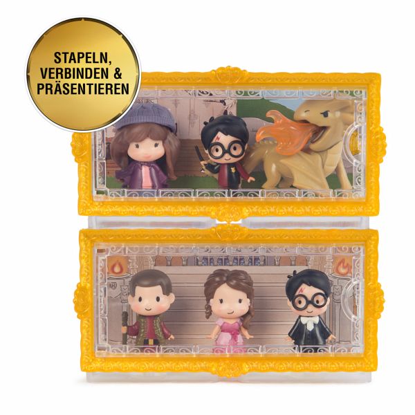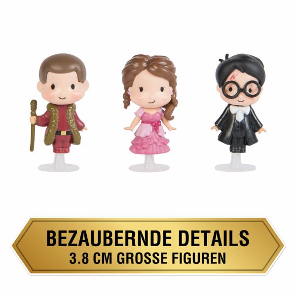 WWO MMM Weihnachtsball Erlebe noch einmal einen legendären Harry Potter Filmmoment aus dem vierten Schuljahr: den sagenhaften Weihnachtsball. Das Wizarding World - Micro Magical Moments Multipack "Der Weihnachtsball" stellt Harry, Hermine und Viktor Krum in ihren wunderschönen Outfits für den Ball dar. Die Figuren sind ca 3,8 cm groß und mit zauberhaften Details gestaltet. Ebenfalls im Set enthalten: ein Setzkasten mit Goldrahmen, inspiriert von den Gemälden in Hogwarts. Mit dem detailreich gestalteteten doppelseitigen Hintergrund für den Setzkasten kann das unvergessene Fest im Rahmen des Trimagischen Turniers zuhause nachgestellt und ausgestellt werden. Alternativ können die drei Figuren auch auf den mitgelieferten Halterungen präsentiert werden. Für kleine und große Harry Potter und Zauber-Fans zum Spielen, Sammeln und Verschenken, geeignet für Kinder ab 6 Jahren. Inhalt: _ 3 Figuren _ 1 Setzkasten _ 3 Halterungen _ 1 Sammelübersicht Maße: 12,95 x 4,78 x 12,7 cm