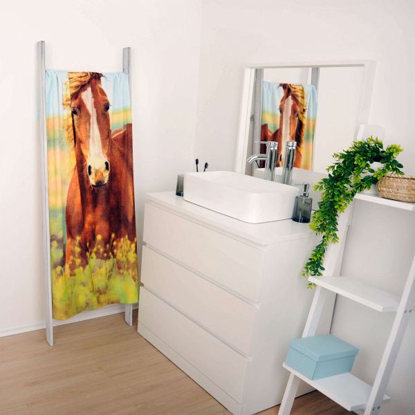 Das saugstarke Badetuch im beliebten Pferde Design ist am Strand, im Freibad oder im Badezimmer ein echter Hingucker. Hergestellt und zertifiziert nach dem STANDARD 100 by OEKO-TEX® ist das Handtuch schadstoffgeprüft und nimmt Feuchtigkeit direkt auf. Es trocknet innerhalb kürzester Zeit und sorgt für angenehmes Gefühl auf der Haut. In unserer Young Collection werden Sportfans, Tierliebhaber und Kinder mit unterschiedlichen Hobbies und Vorlieben fündig. Schauen Sie durch unser vielfältiges Sortiment und lassen Sie sich von bunten, spannenden, niedlichen und vor allem detailreichen Motiven begeistern. Hier ist für jeden etwas dabei!
