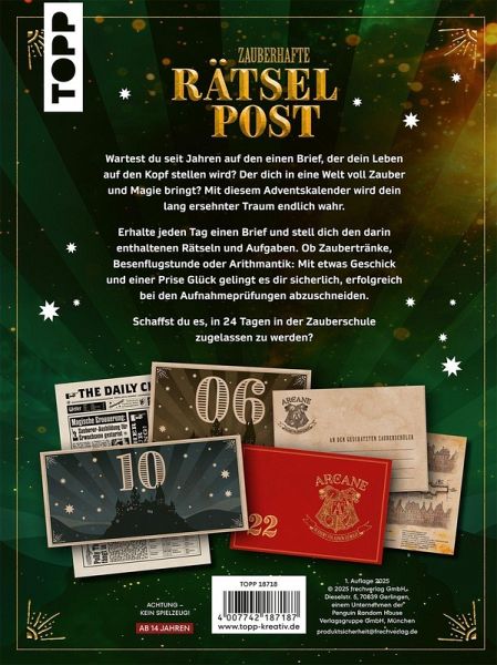 Rätsel-Adventskalenderkreative und abwechslungsreiche Inhalte rund um das Potter-Universum24 echte Briefe mit magischen Aufgaben