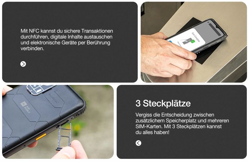 Das 6,56-Zoll-Display mit HD+-Auflösung und 90-Hz-Bildwiederholrate sorgt für klare Darstellung. Die integrierte 10.000-mAh-Batterie bietet dir lange Laufzeiten, unterstützt Schnellladung und ist fest verbaut. Damit bist du auch bei längeren Einsätzen unabhängig von einer Stromquelle.