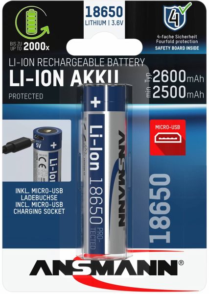 Ansmann Li-Ion 18650 2600 mAh 3,6V Micro-USB Buchse