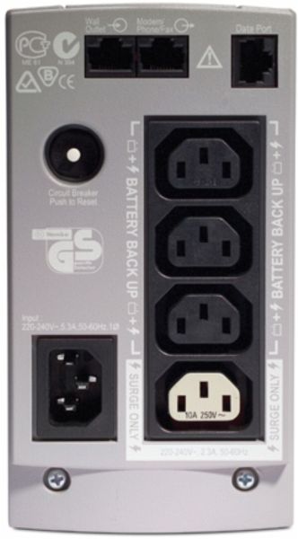 USV-System mit Überspannungsschutz für elektronische Geräte und Computer. Das System bietet Schutz für Datenleitungen mit einer analogen RJ45-Telefonleitung für Telefon, Fax, Modem oder DSL. Die Laufzeit bei 100 W beträgt 35 Minuten. Die Abmessungen sind 16,5 x 9,1 x 28,4 cm und das Gewicht beträgt 6,03 kg.