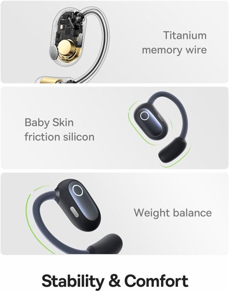 - Abnehmbarer Nackenbügel & Titan-Ohrbügel: Sicherer Halt bei Bewegung, individuell anpassbar