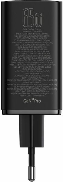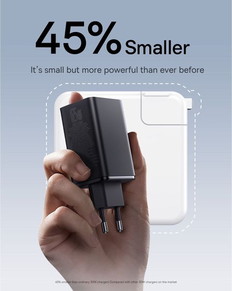 Baseus Kompaktes Kraftpaket: Baseus GaN6 Pro 65W Ladegerät (EU), schwarz
