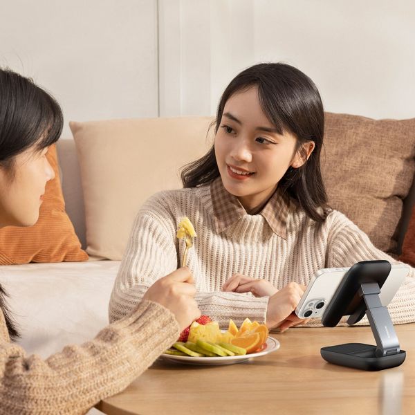 Ob im Büro oder unterwegs - mit dieser klappbaren Halterung hast du dein Smartphone immer im Blick. Die Kombination aus klarer Linienführung und funktionalem Design sorgt für einen aufgeräumten Arbeitsplatz und flexible Nutzung. Durch die verstellbare Höhe passt sich der Ständer deinen Bedürfnissen an - ganz gleich, ob du Videos schaust oder telefonierst.
