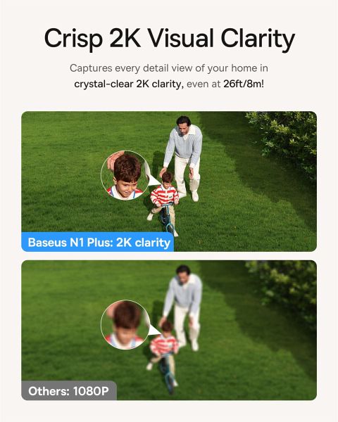 Das Baseus Security N1 Plus Set besteht aus zwei kabellosen 2K-Überwachungskameras mit Ultraweitwinkelobjektiv und intelligenter Bewegungserkennung und bietet so zuverlässige Sicherheit rund ums Haus. Dank Farb- und Infrarot-Nachtsicht sowie integriertem LED-Licht gelingen auch Nachtaufnahmen in gestochen scharfer Qualität. Die HomeStation mit lokalem Speicher schützt Ihre Daten ohne Cloud-Abonnement und ermöglicht die Erweiterung auf bis zu acht Kameras. Das System ist flexibel und einfach zu installieren, denn es verfügt über Sprachsteuerung, Zwei-Wege-Audio und ist wetterfest (IP67).