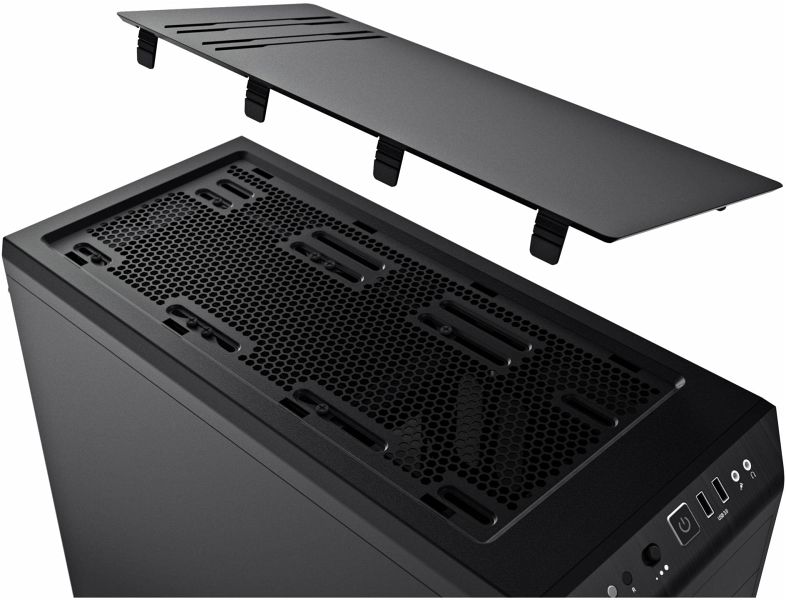 - Öffnung des Top-Covers kann dreistufig eingestellt werden: geschlossen für absolut leisen Betrieb, halb geöffnet für bessere Luftableitung oder komplett entfernt, um einen Radiator zu installieren