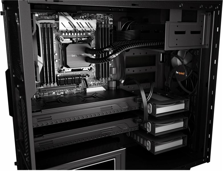 - Wasserkühlungsoptimiert für den Einbau von Radiatoren bis zu 360mm an drei verschiedenen Installationspunkten