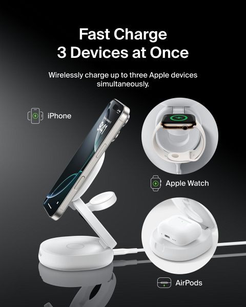 Belkin BoostCharge Kompakte magnetische 3-in-1-Ladestation / Weiß