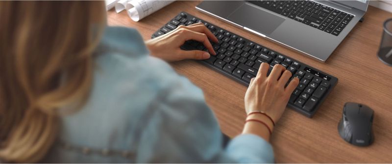 Mit diesem Set aus Tastatur und Maus arbeitest du effizient und ohne Kabelsalat. Die Tastatur im Vollformat bietet dir einen separaten Ziffernblock und Funktionstasten für Mediensteuerung. Die Maus liegt angenehm in der Hand und lässt sich sowohl mit der linken als auch mit der rechten Hand bedienen.
