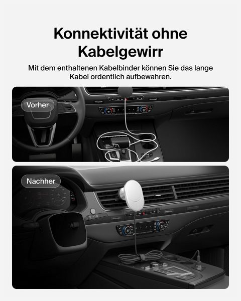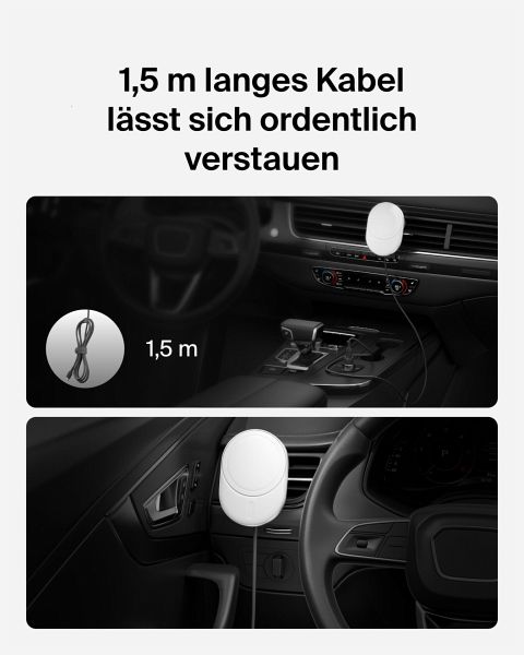 - Auto-Ladegerät ermöglicht mit Qi2-Technologie und bis zu 15 W Leistung bis zu 2-mal schnelleres kabelloses Laden