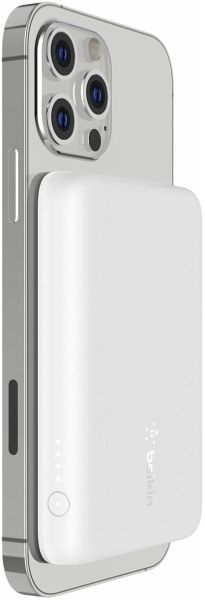 Diese Powerbank zum kabellosen Laden nutzt die MagSafe-Technik und blockiert die Kamera des Phone 12 nicht, sodass Sie Ihr Smartphone auch während des Ladens nutzen können. Sie sorgt überall für einen schnellen Energieschub und eignet sich perfekt für den Weg zur Arbeit oder für Reisen. An einer LED erkennen Sie, wenn die Powerbank nachgeladen werden muss und mithilfe der "Passthrough"-Ladefunktion können Sie Ihr Smartphone gleichzeitig aufladen.