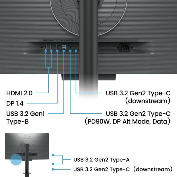 - Anschlüsse: 1x HDMI 2.0 / 1x DisplayPort 1.4 / Kopfhörer-Anschluss / 3x USB-A 3.2 Gen 1 / 1x USB-B 3.2 Gen 1 / 1x USB-C 3.2 Gen 1