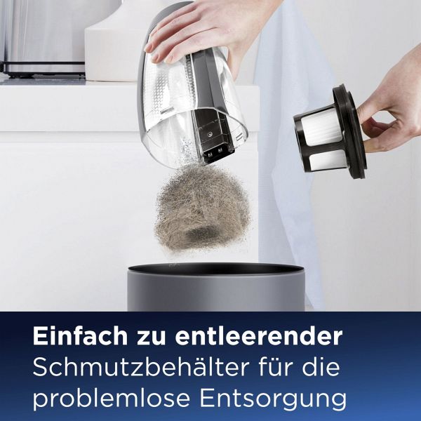 - Großer, leicht zu entleerender Schmutzbehälter zur einfachen Entsorgung von Tierhaaren und Schmutz
