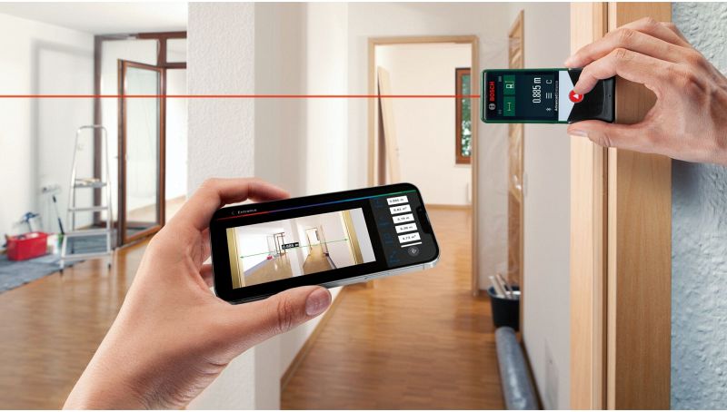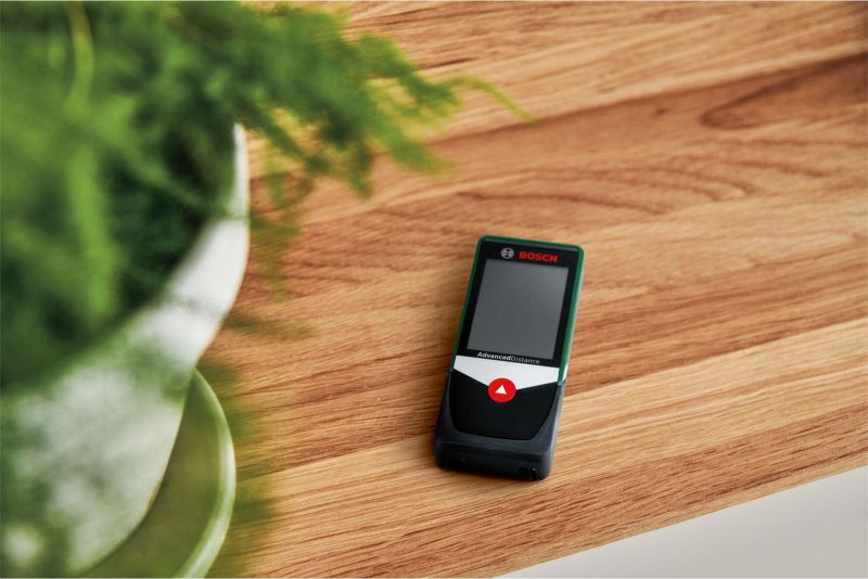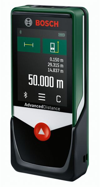 Intelligente Planung beginnt mit dem AdvancedDistance 50C. Intuitiver Touchscreen und Funktionen für Entfernungsmessung sowie Flächen- und Volumenberechnung. Dies ist besonders nützlich, um zu prüfen ob das gewünschte Möbelstück in die Wohnung passt, oder die benötigte Menge an Farbe oder Bodenbelag zu ermitteln. Dieses Messgerät kann Ergebnisse addieren oder subtrahieren, schräge Winkel anzeigen und sogar bis zu 50 m indirekt messen, falls die Messstrecke von einem Objekt blockiert wird. Alle Daten können zur bequemen Dokumentation an die Bosch App gesendet werden, so spart man Zeit und vermeidet Fehler beim manuellen übertragen der Messwerte.