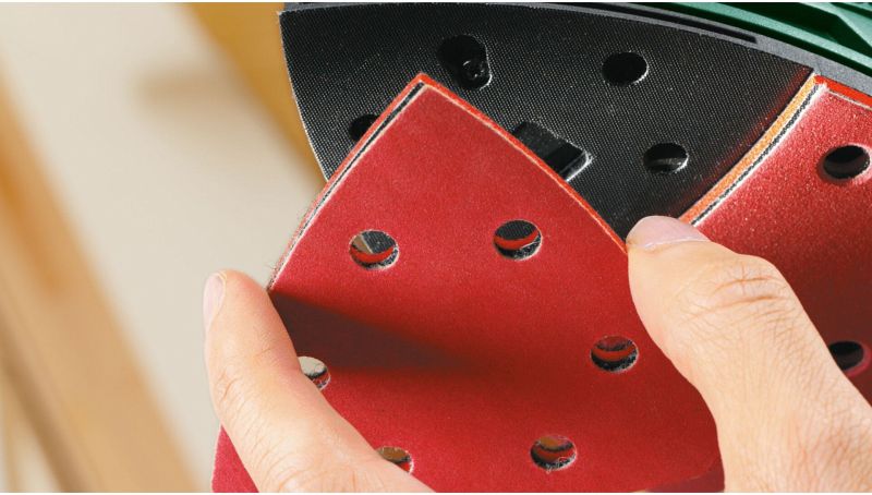 - Klettverschlusssystem ermöglicht einfache Schleifpapierwechsel