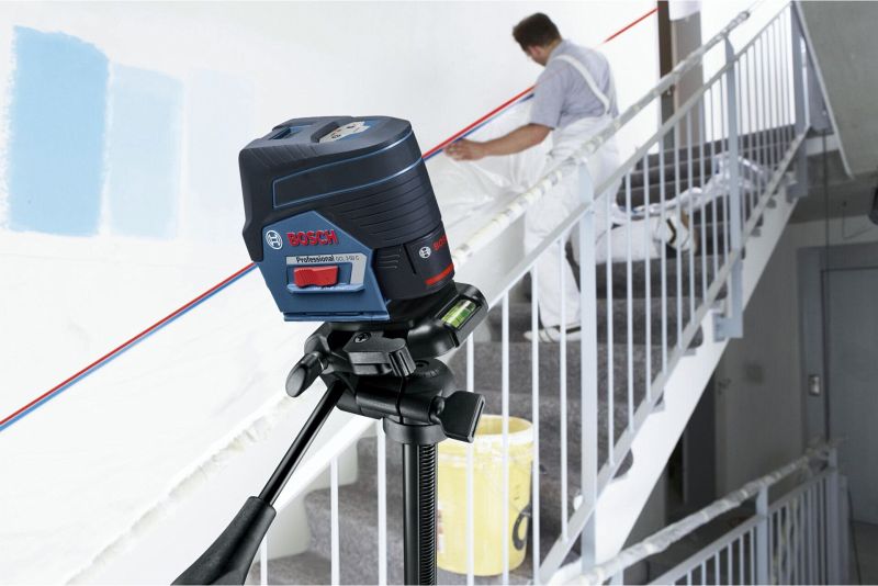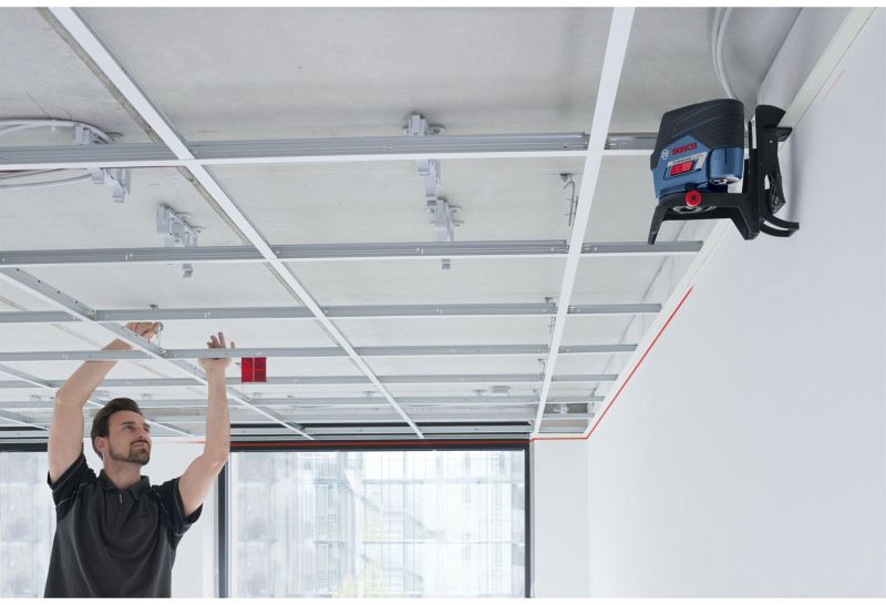 Das Gerät ist für horizontales und vertikales Ausrichten mit einem langen Überschwingen von fast 360° konzipiert und eignet sich für Projekte wie Trocken- und Innenausbauarbeiten. Die horizontalen und vertikalen Laserlinien und die beiden zentrierten Lotpunkte des GCL 2-50 C Professional bieten eine optimale Sicht von bis zu 20 m Entfernung ohne Empfänger und bis zu 50 m Entfernung mit Empfänger.