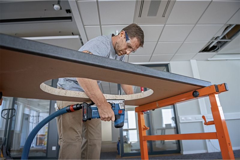 Sie eignet sich ideal für Rund- und Querschnitte in Massivholz, Spanplatten und Holzverbundwerkstoffen sowie in dickeren oder härteren Materialien. Sie ist kompatibel mit Führungsschienen (über Adapter) und allen Bosch Professional 18V-Akkus und -Ladegeräten (Professional 18V System). Auch kompatibel mit AMPShare, der markenübergreifenden Akku-Allianz.