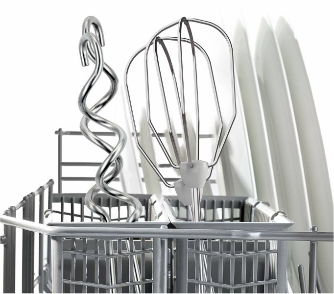 - Gerät und Zubehöre sind leicht zu reinigen. Zubehöre - Besen und Knethaken - sind spülmaschinengeeignet.