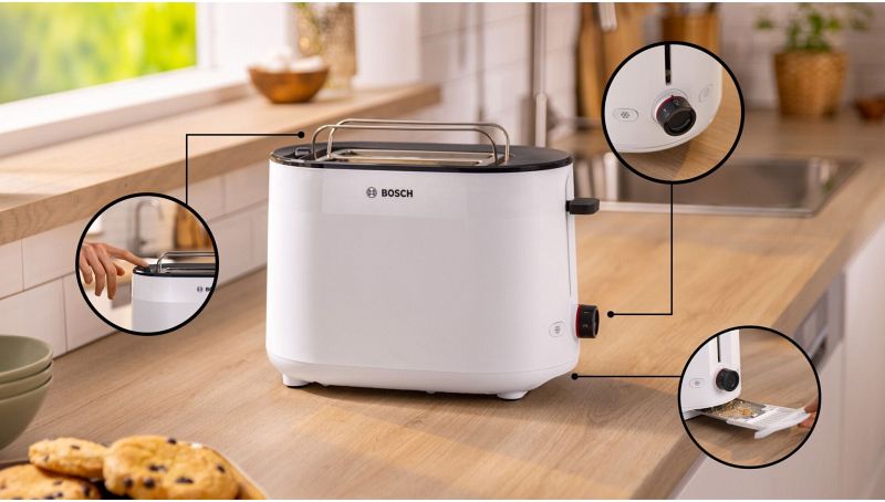 Toaster-Typ: ParallelschlitzBrötchenaufsatz: JaAuftau-Funktion: JaAnzahl der Toasts: 2Krümelschublade: JaBrotscheibenzentrierung: JaHigh-Lift: JaStopp-Funktion: Ja