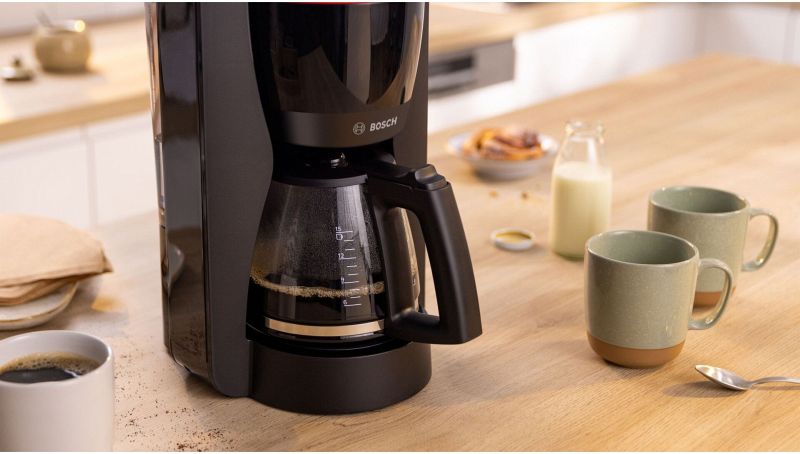 Die Kaffeemaschine mit abnehmbarem Wassertank und Warmhaltefunktion. Das ansprechende Oberflächendesign mit matt-glänzenden Highlights bringt Leben in die Küche.