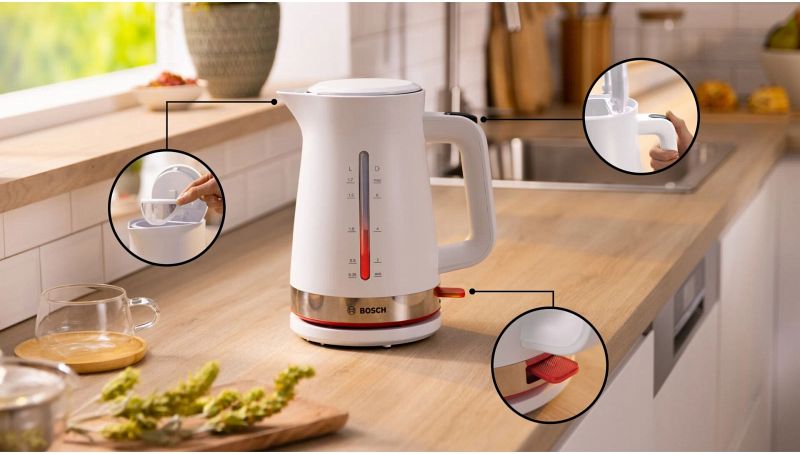 Der entnehmbare und leicht zu reinigende Filter verhindert Kalk im Getränk.