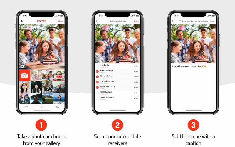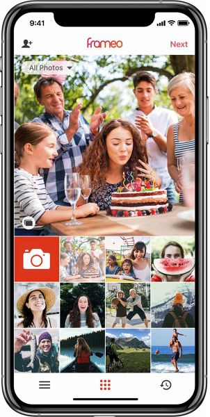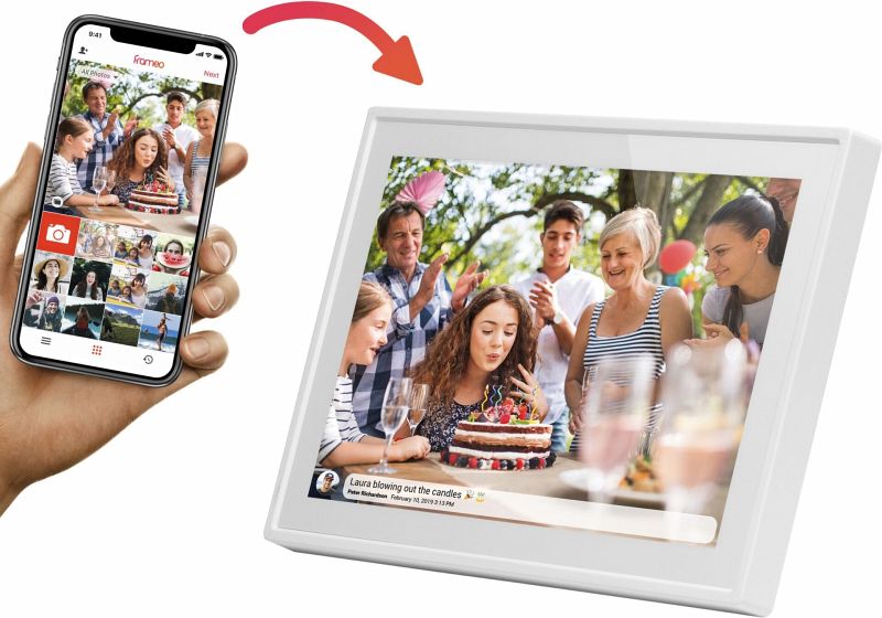 - Kostenlose Frameo Smartphone-App (iOS/Android)